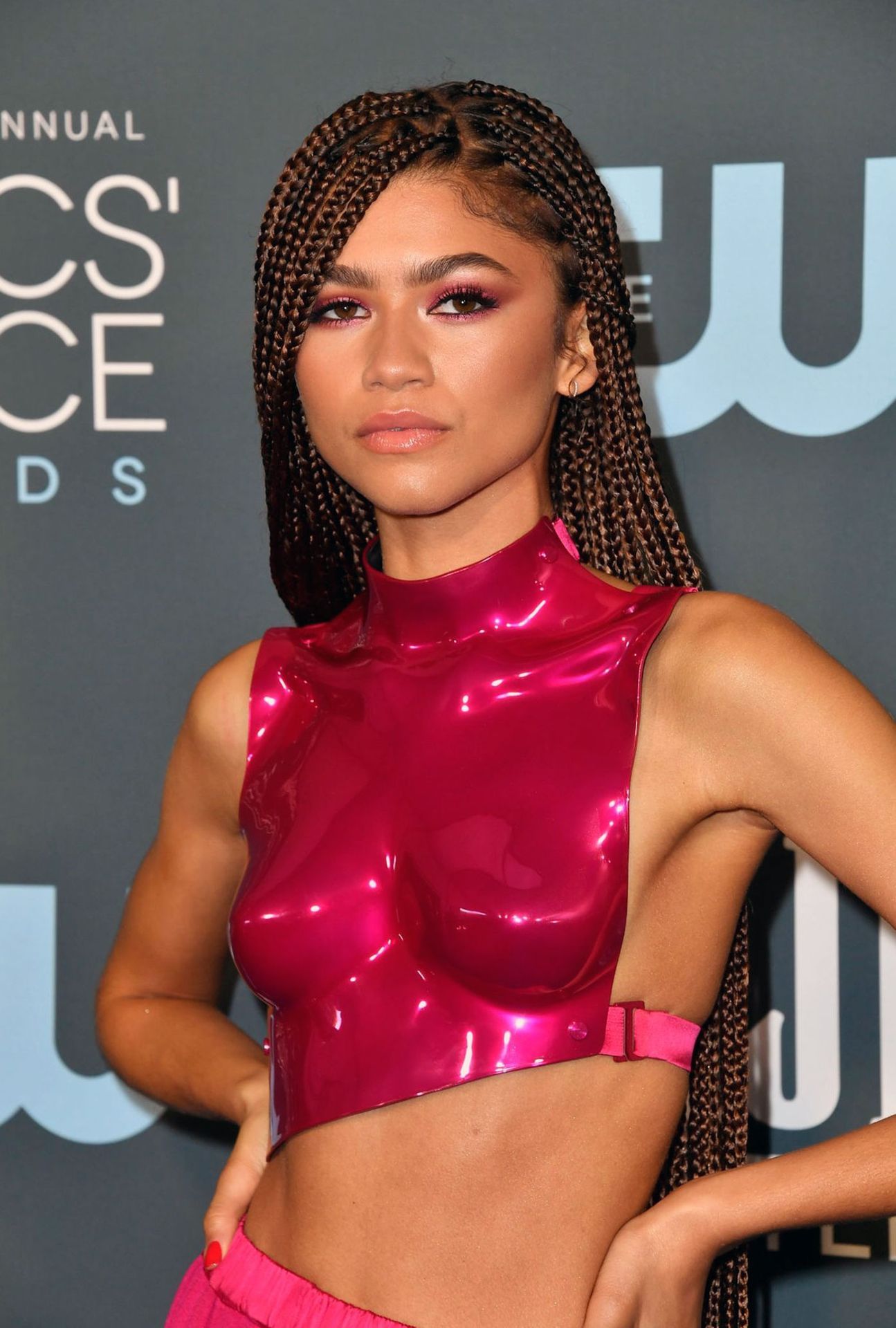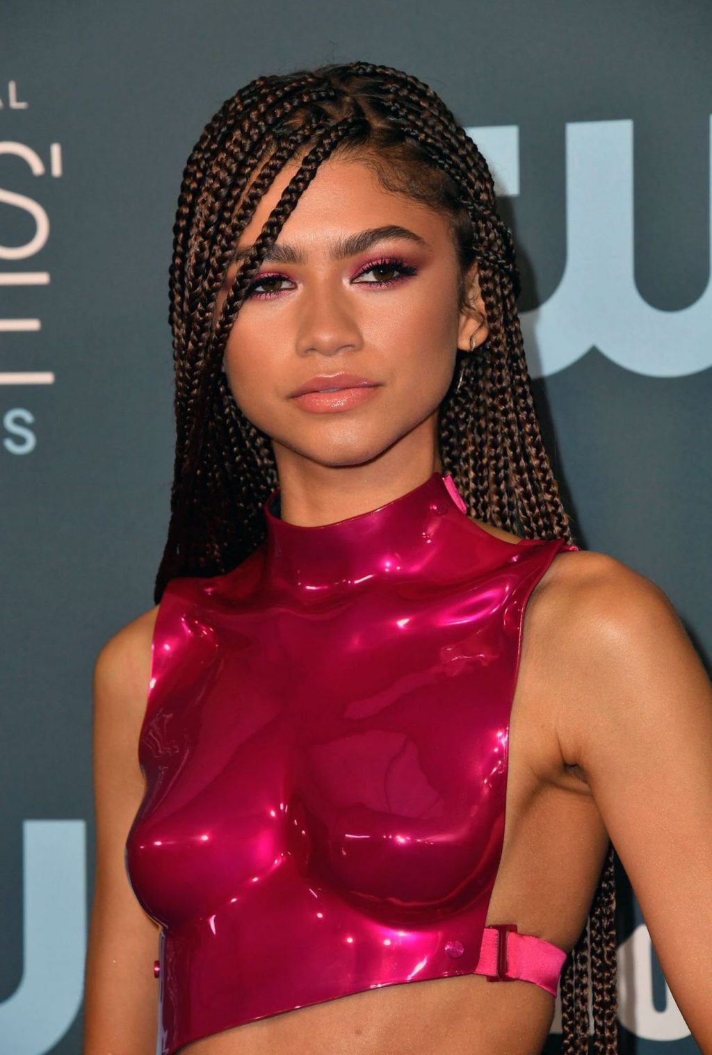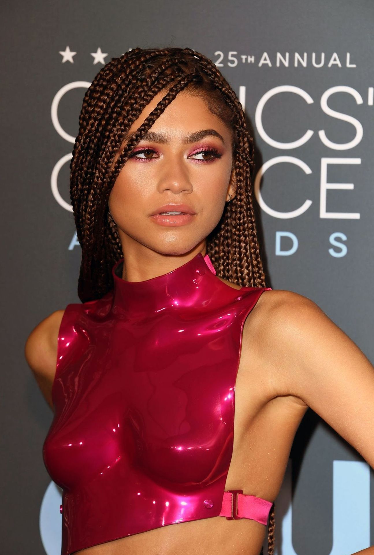 And for the end. Here are some photos of Zendaya when she attended the 25th Annual Critics’ Choice Awards at Barker Hangar in Santa Monica. This event happened earlier this month, and our hot ebony wore something very astonishing and new! Just like that time when Lady Gaga wore a meat dress, except Zendaya’s outfit is vegetarian! She did a body mold to create this cast for her chest! So, we see precisely how her tits look underneath it! Enjoy folks!