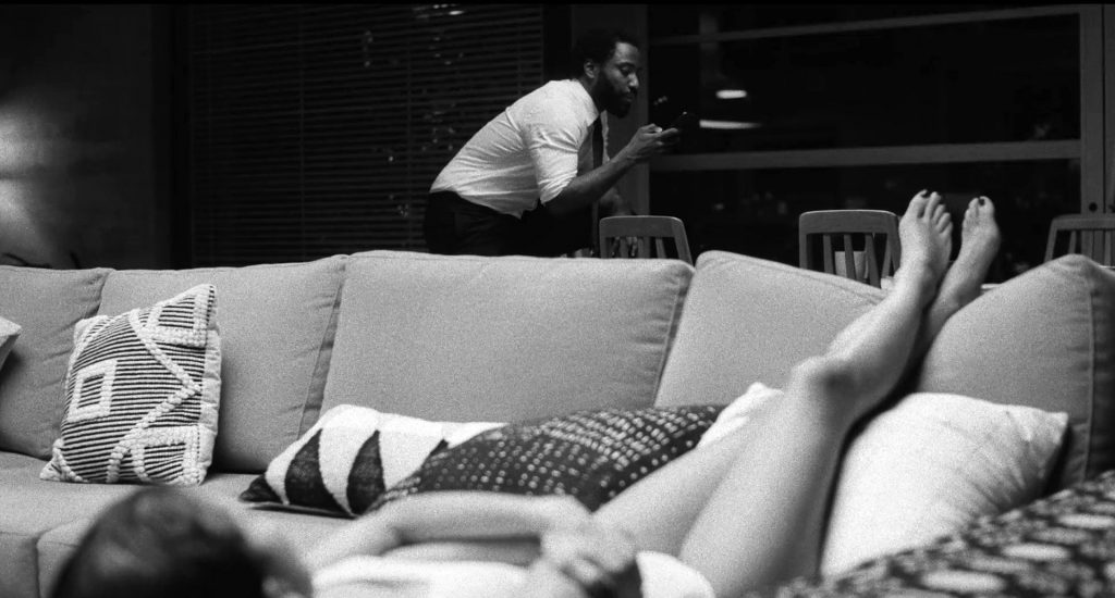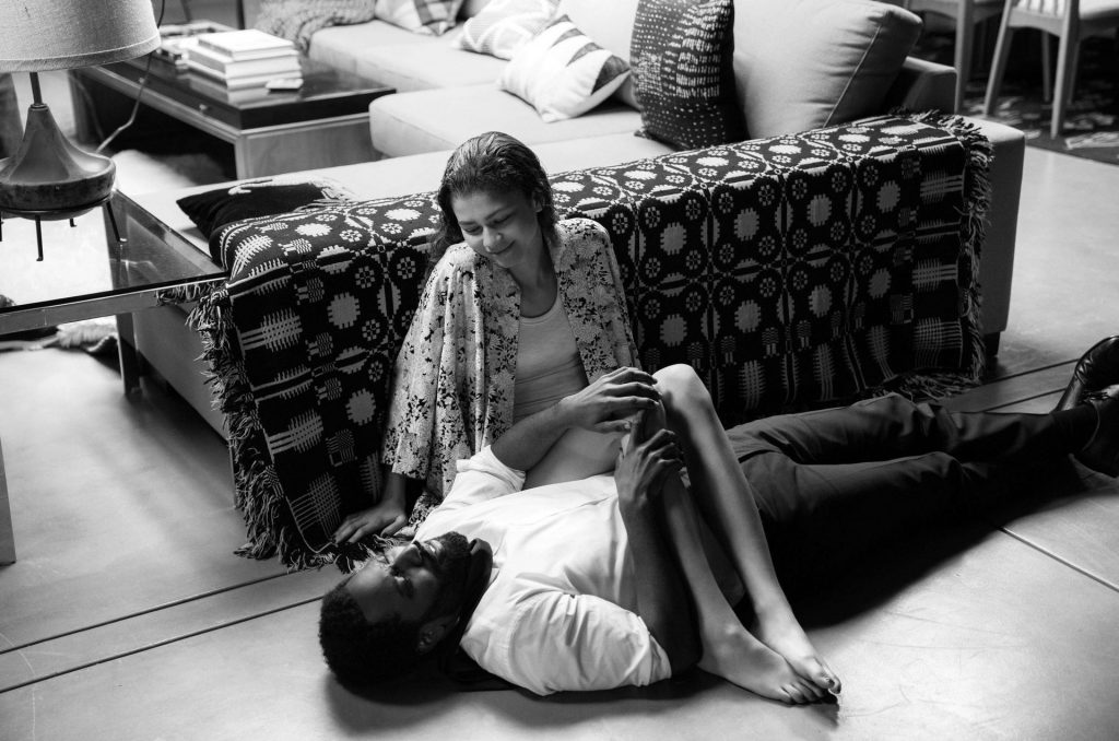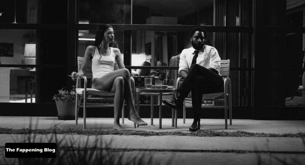 Zendaya is showing great pokey nipples in a white tank top as she walks onto a patio in her underwear and sits down next to a guy who is smoking a cigarette. She then talks to him and borrows the cigarette. After a while the guy leaves and she follows him, showing her butt in her panties as she walks through a kitchen. She then turns around and returns to sit at the kitchen table, still showing pokies.