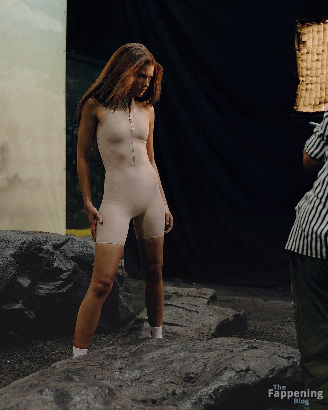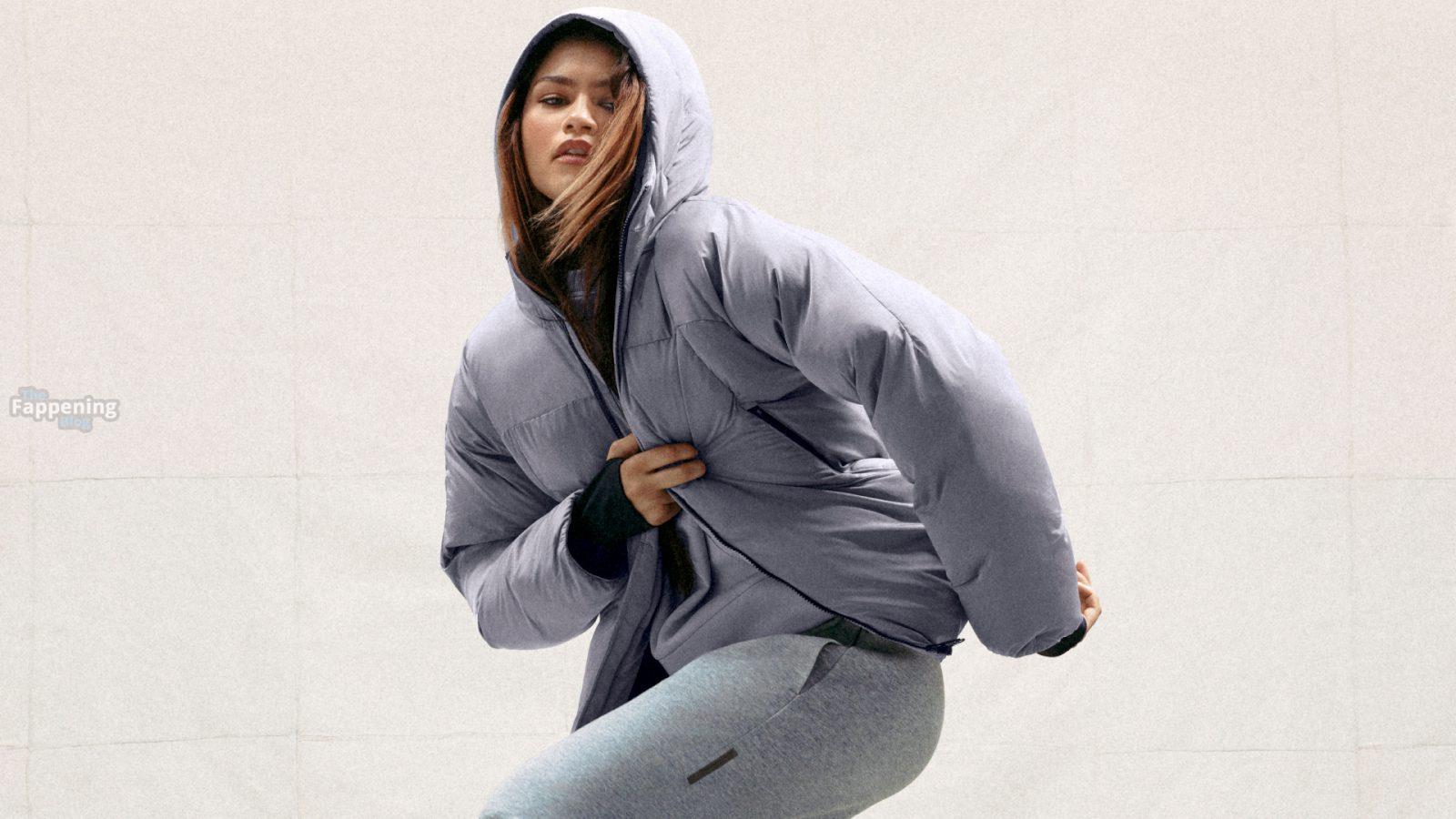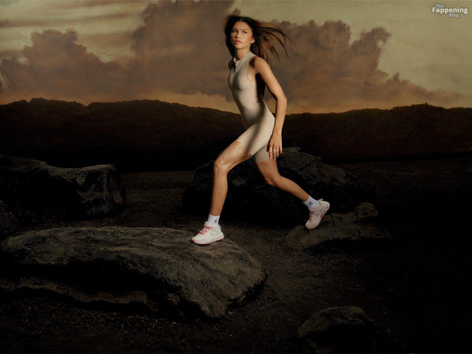 Зендая в последней кампании On, позируя в облегающей спортивной одежде, которая подчеркивает её подтянутые ноги и тонкую талию.