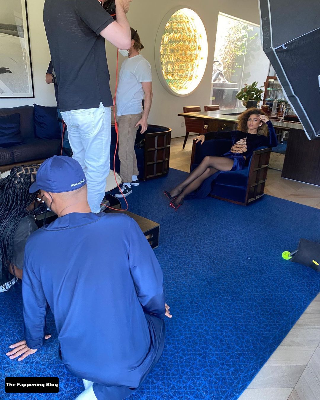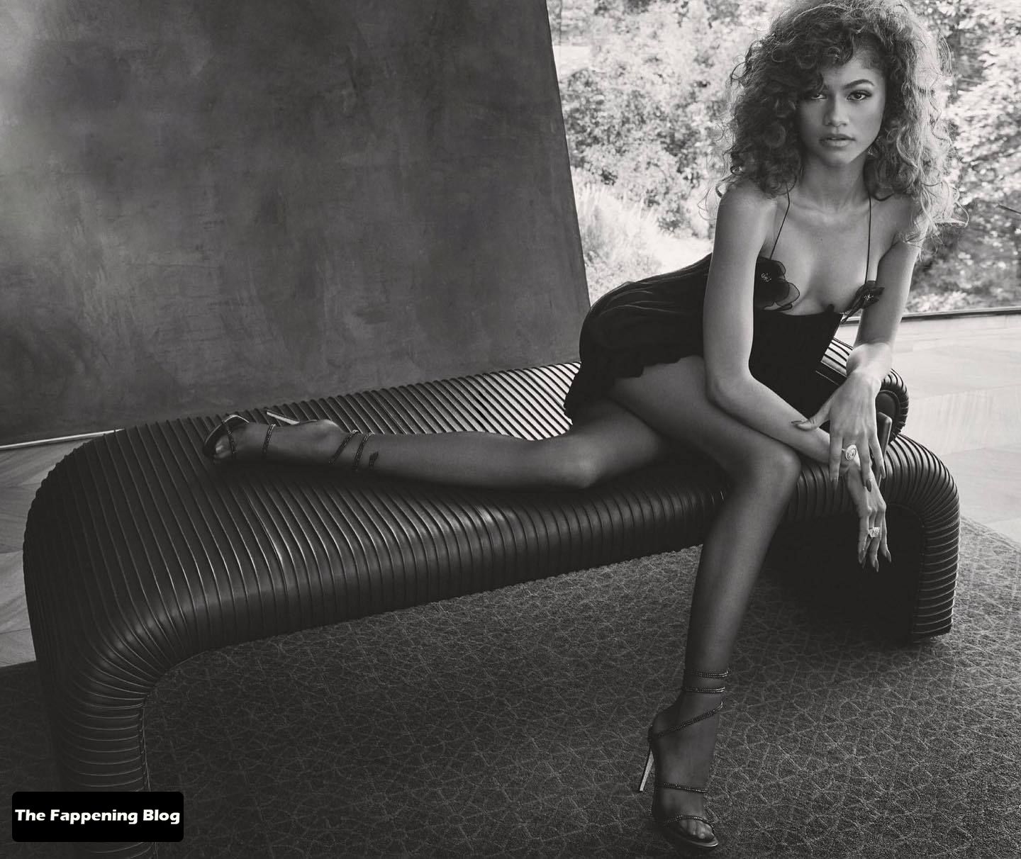 Актриса Зендая демонстрирует свои сексуальные ноги и грудь, позируя для фотосессии в октябрьском номере Vogue UK 2021 года.