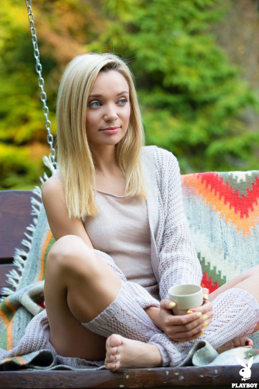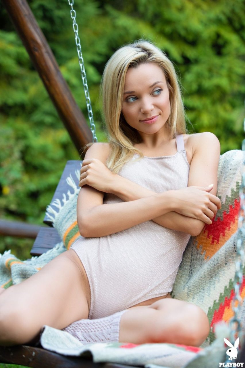 Женя Белая участвует в ню фотосессии для журнала Playboy + HD видео. 27-летняя модель позирует в прекрасный солнечный день. Идеально для игр на улице с киской. Молодая блондинка весело проводит время полностью голой во дворе, показывая свои маленькие сиськи, попку и сексуальные ноги на качелях. Женя любит путешествовать и демонстрировать свое великолепное тело.