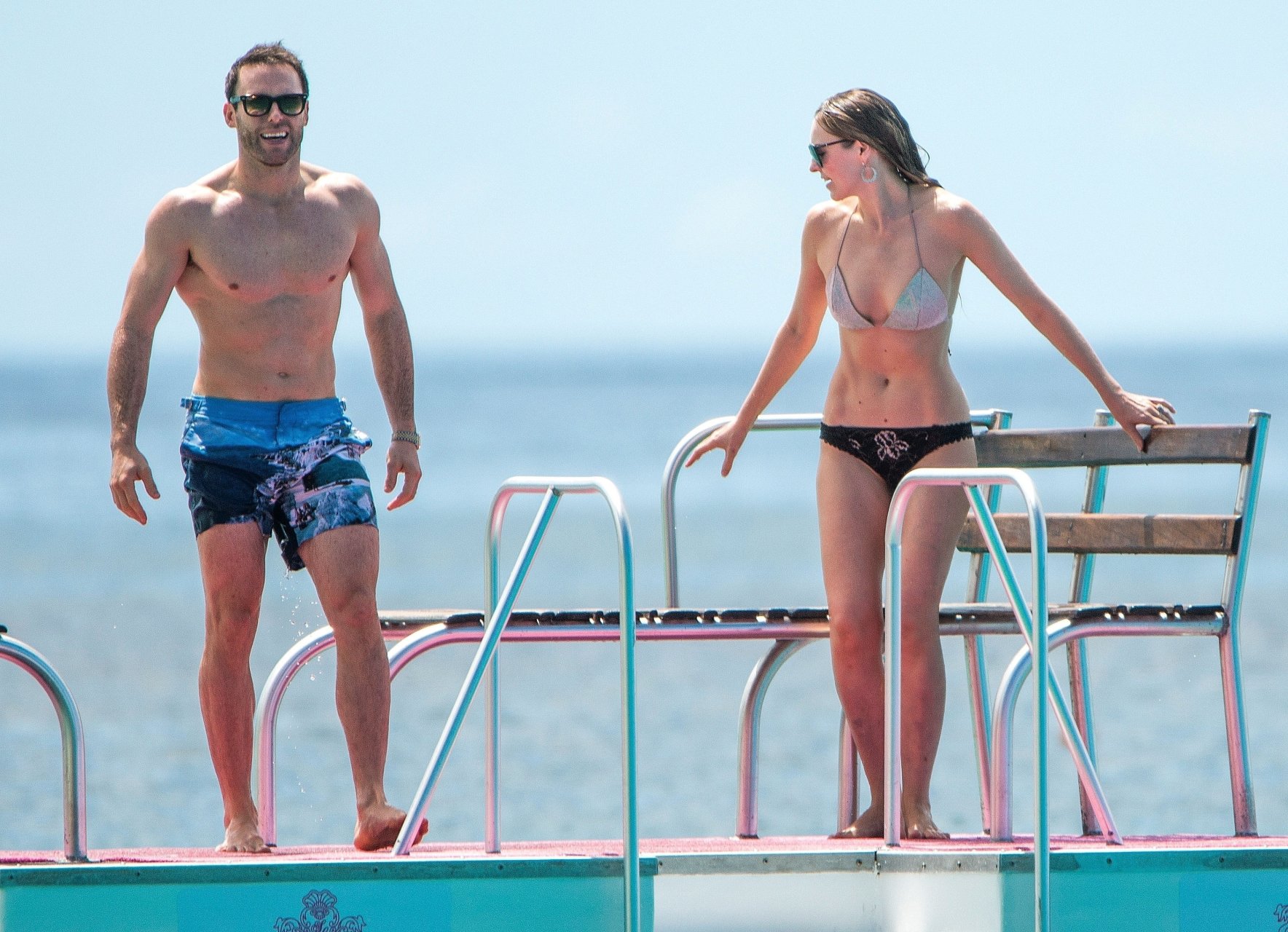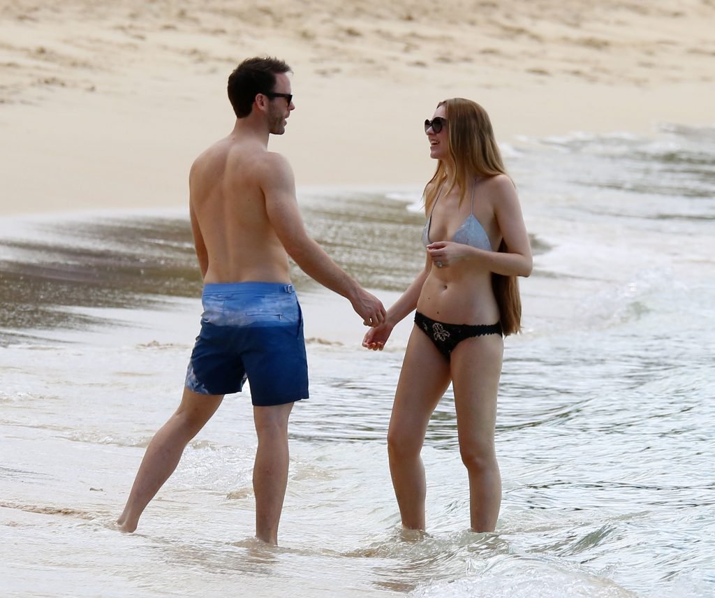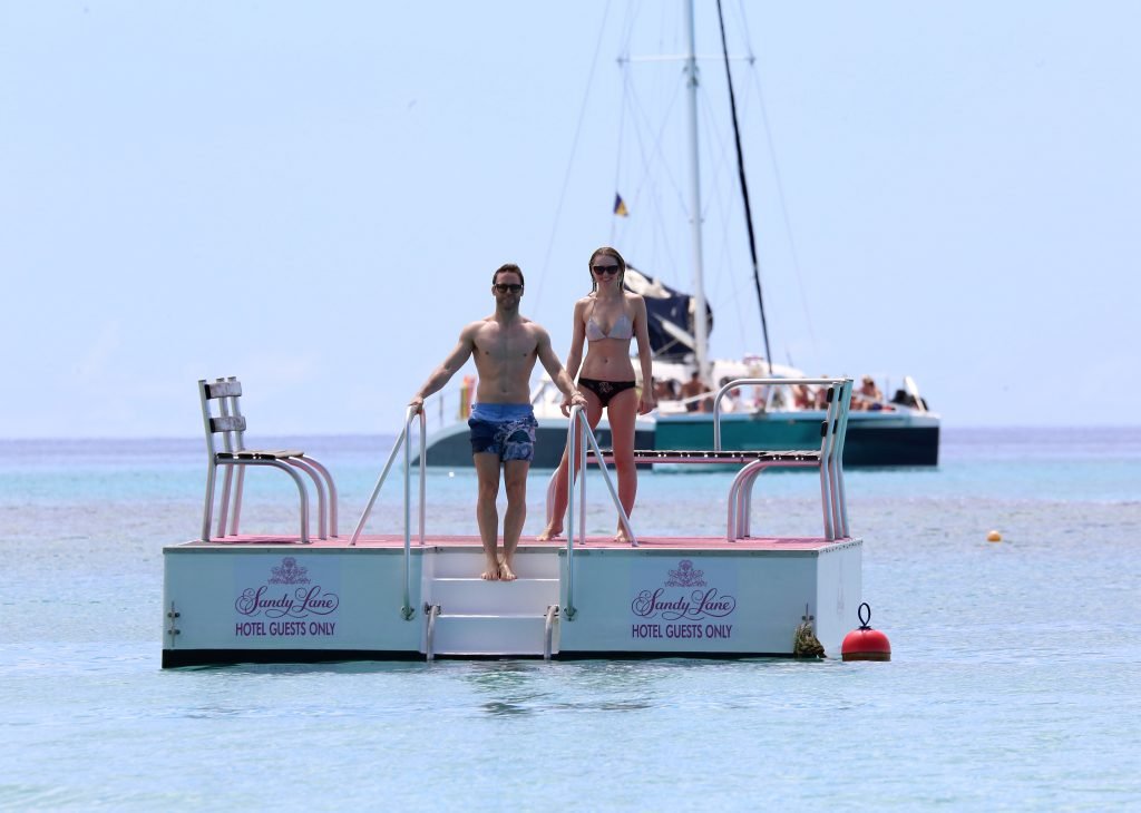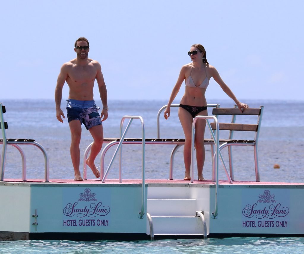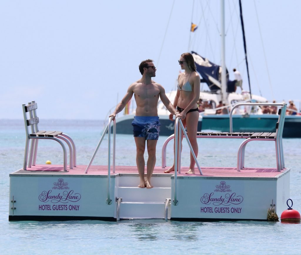 “Ведущая “Blue Peter” Зои Салмон (38) и её муж Уильям запечатлены на пляже Сэнди Лейн во время отпуска на Барбадосе, 28.10.2018.