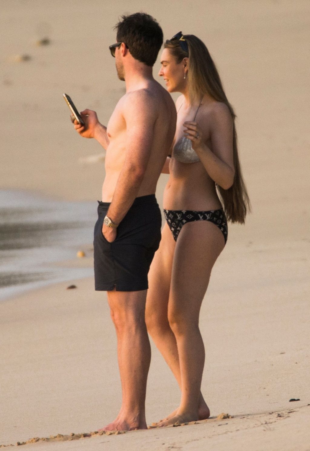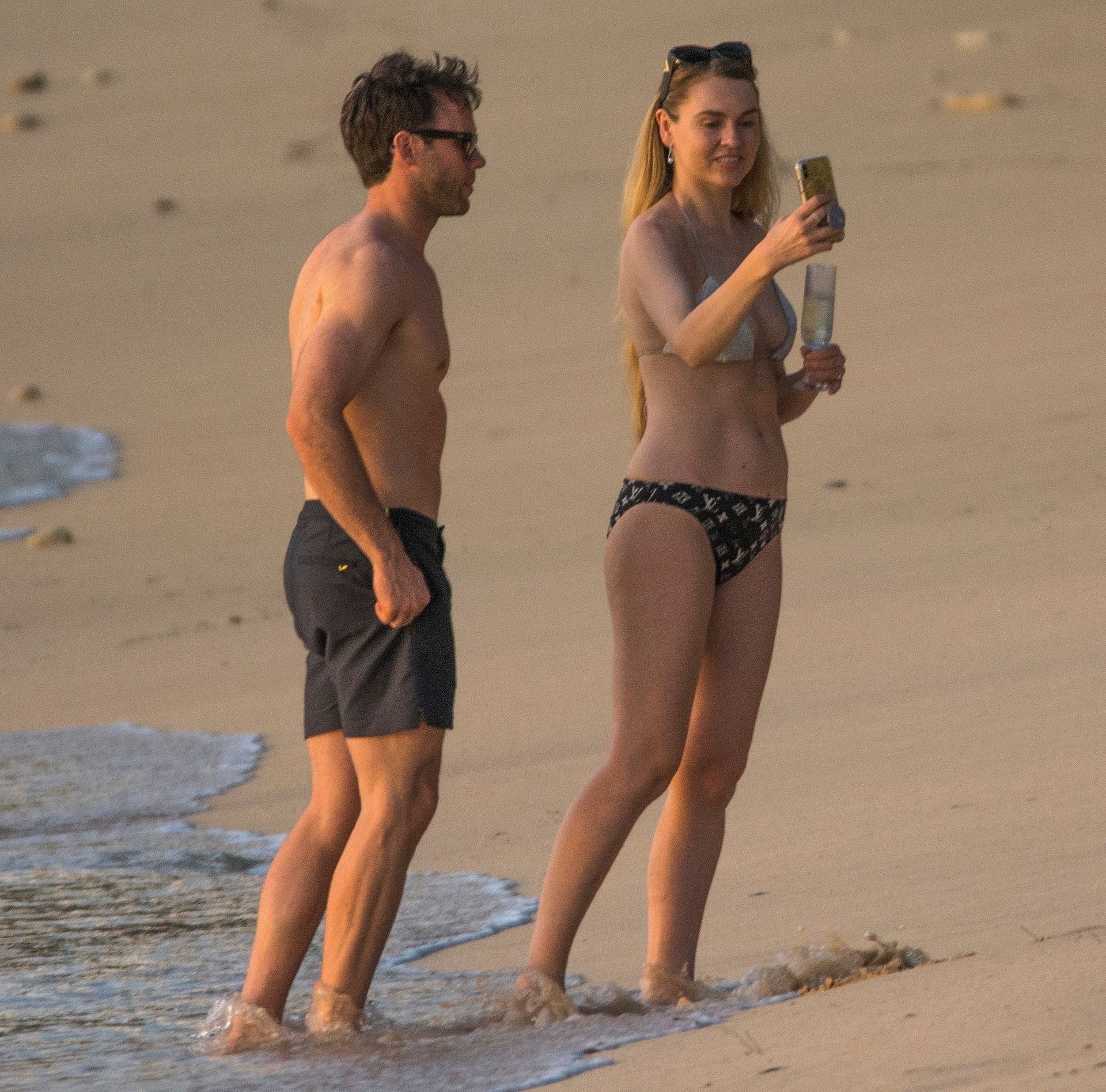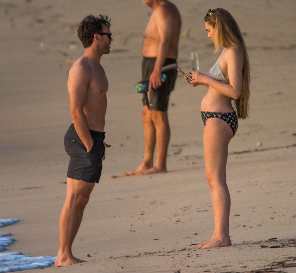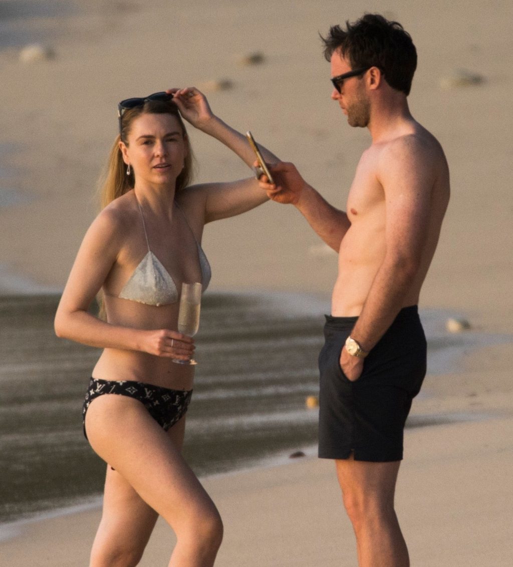 Blue Peter’s Зои Салмон демонстрирует свою стройную фигуру в разноцветном бикини, резвясь на пляже с мужем Уильямом Корри на Барбадосе, 11/02/2019. Пара наслаждалась напитками на пляже во время пребывания в шикарном отеле Sandy Lane.