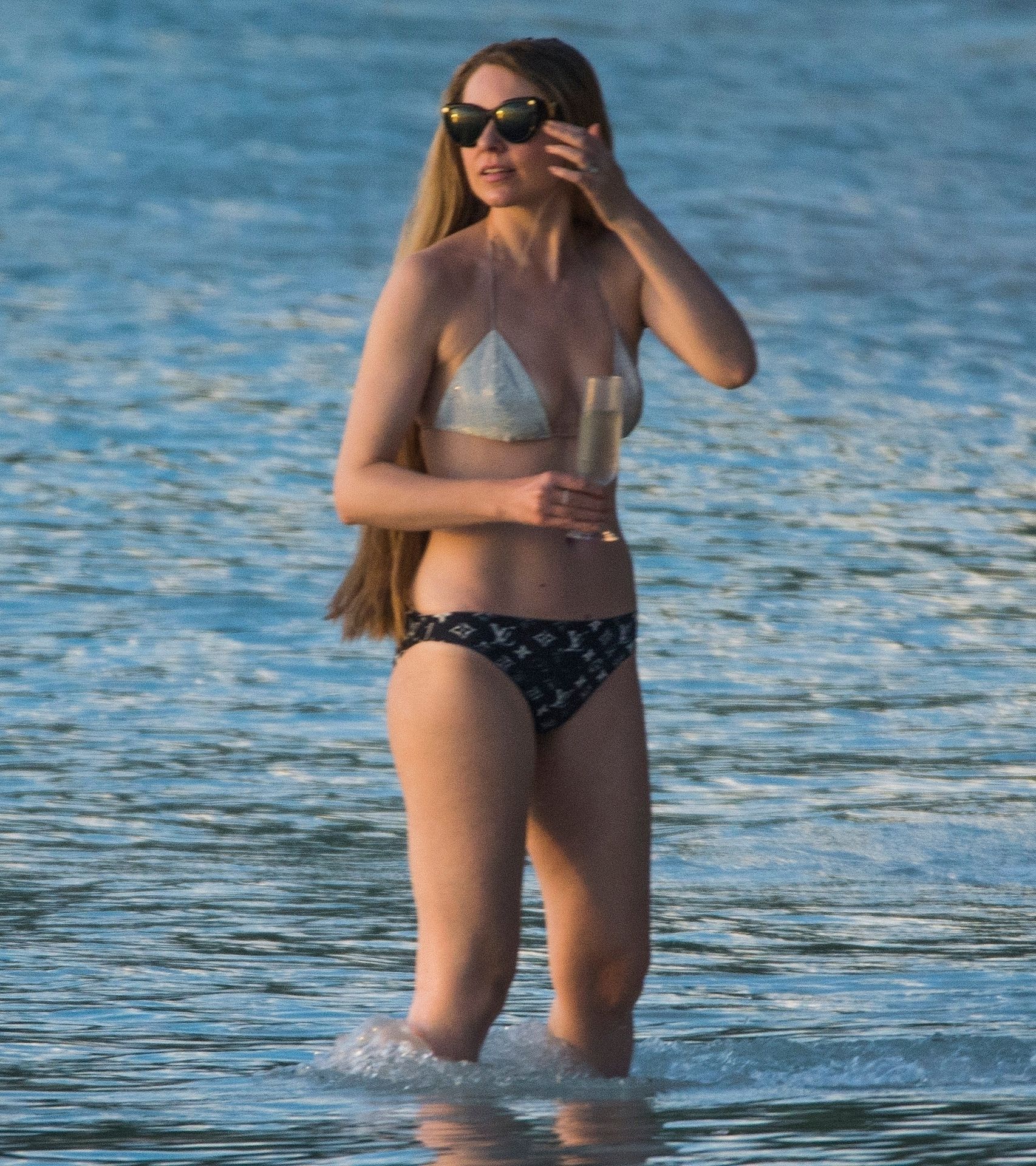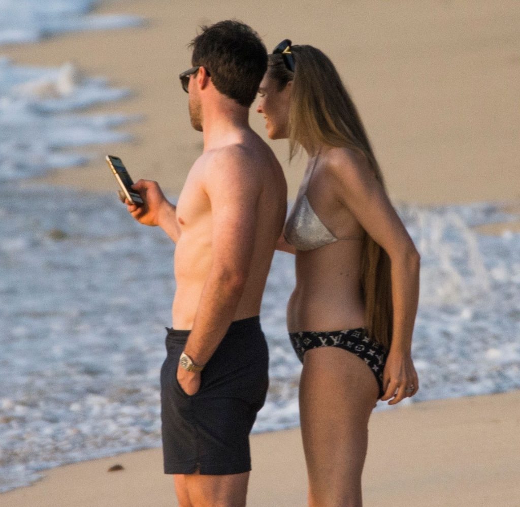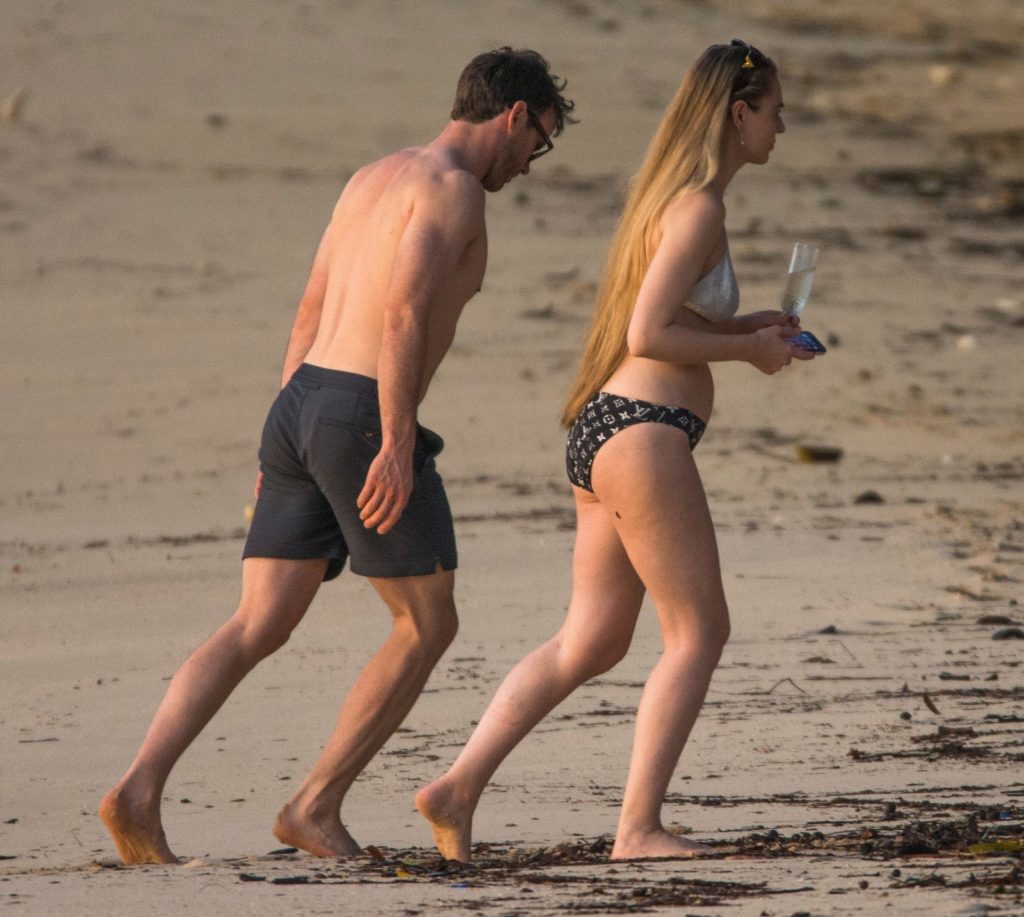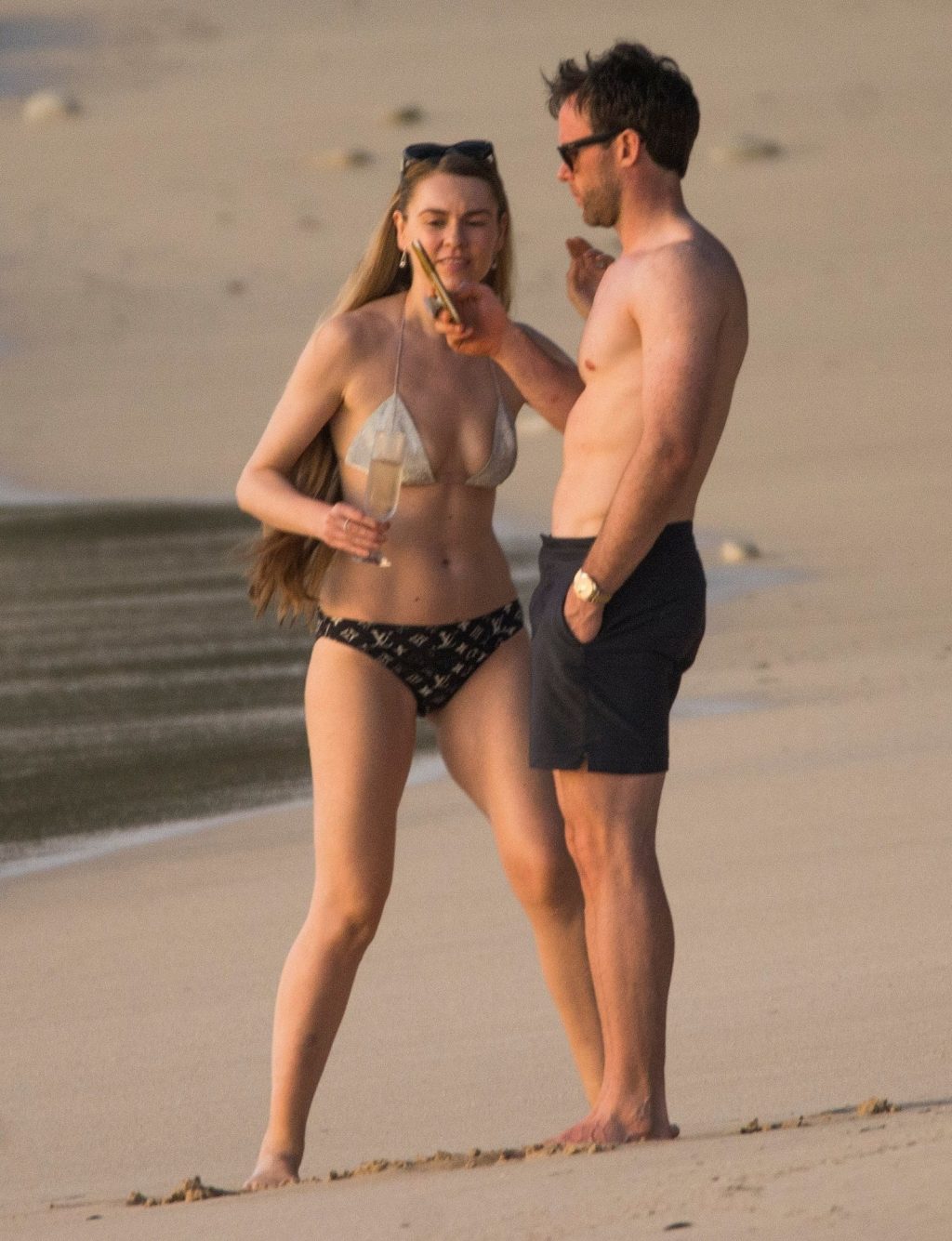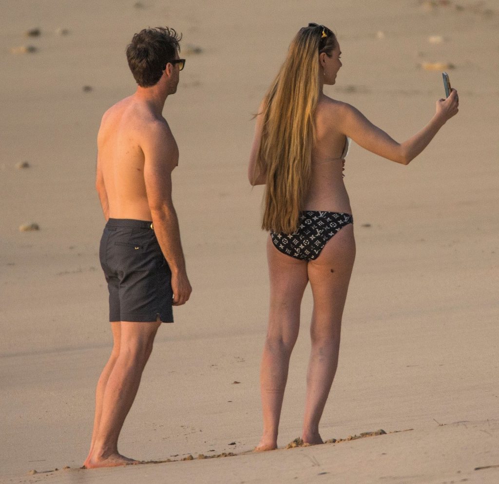 Blue Peter’s Зои Салмон демонстрирует свою стройную фигуру в разноцветном бикини, резвясь на пляже с мужем Уильямом Корри на Барбадосе, 11/02/2019. Пара наслаждалась напитками на пляже во время пребывания в шикарном отеле Sandy Lane.