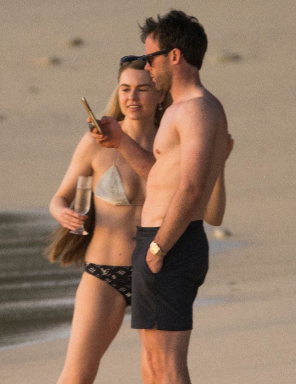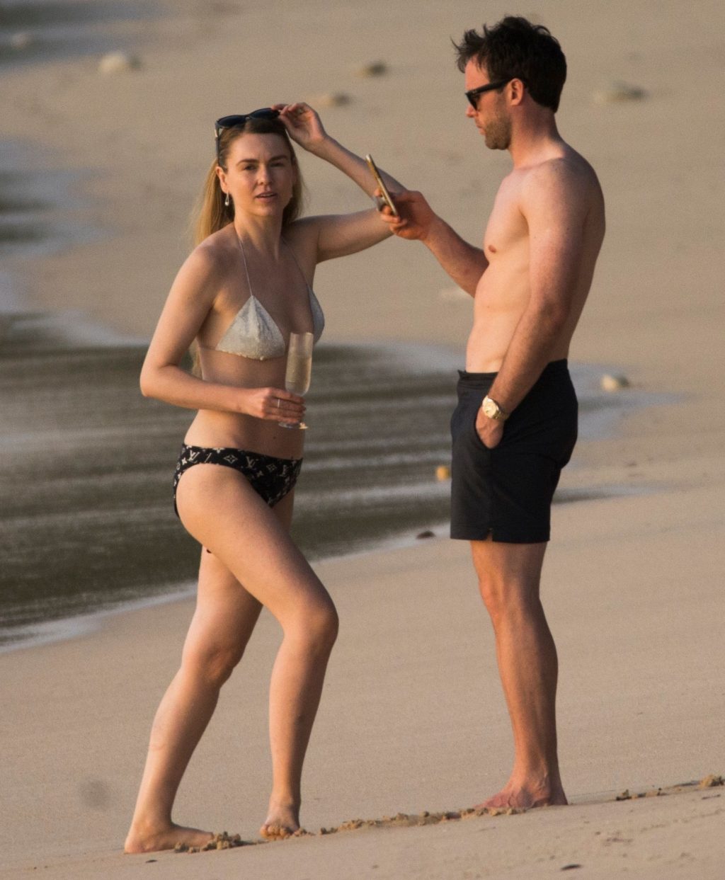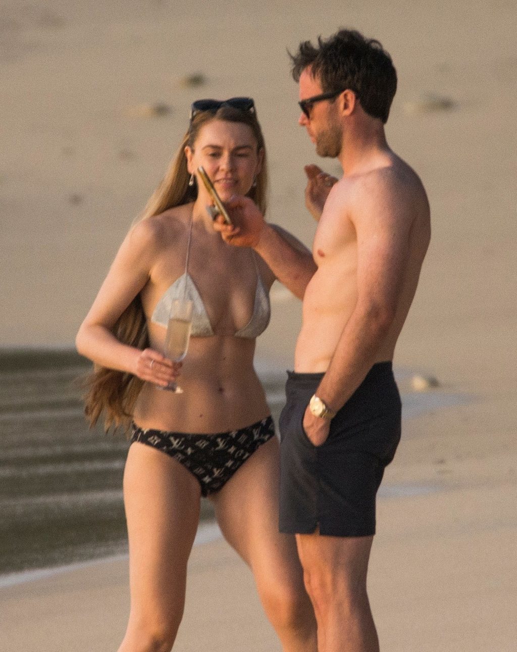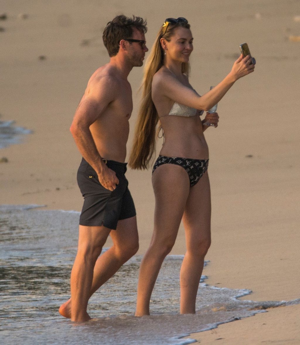 Blue Peter’s Зои Салмон демонстрирует свою стройную фигуру в разноцветном бикини, резвясь на пляже с мужем Уильямом Корри на Барбадосе, 11/02/2019. Пара наслаждалась напитками на пляже во время пребывания в шикарном отеле Sandy Lane.